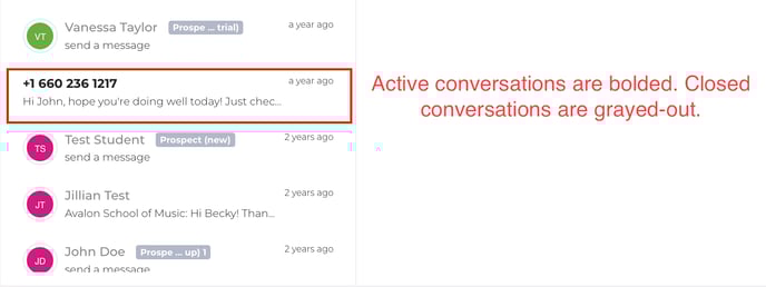 Unlike email, our SMS messaging system doesn’t use Read/Unread statuses. Instead, we organize messages based on their conversation state — Active or Closed — which better reflects the workflow of how SMS communication actually functions.