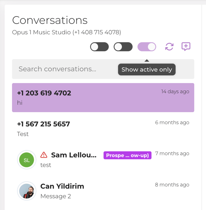 Active conversations are ongoing or awaiting a response — for example, when a customer has recently sent a message or your team is still working on a reply.